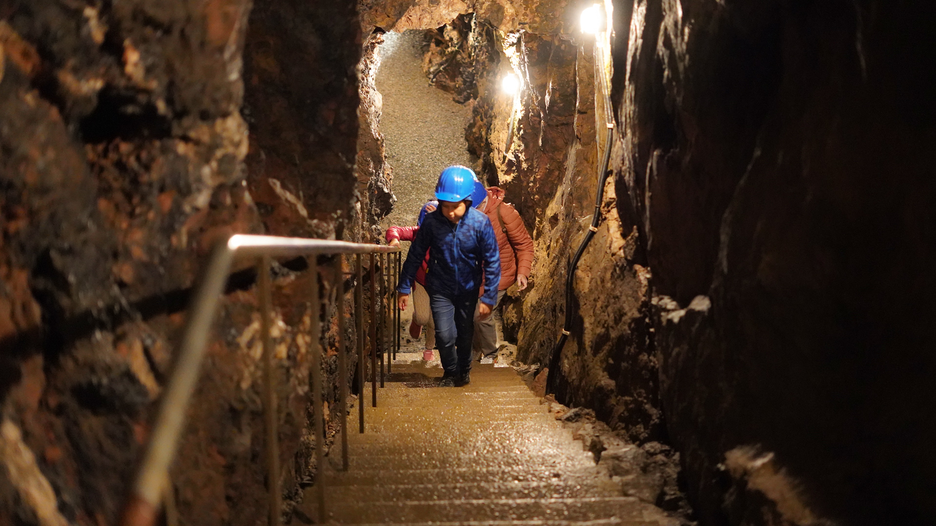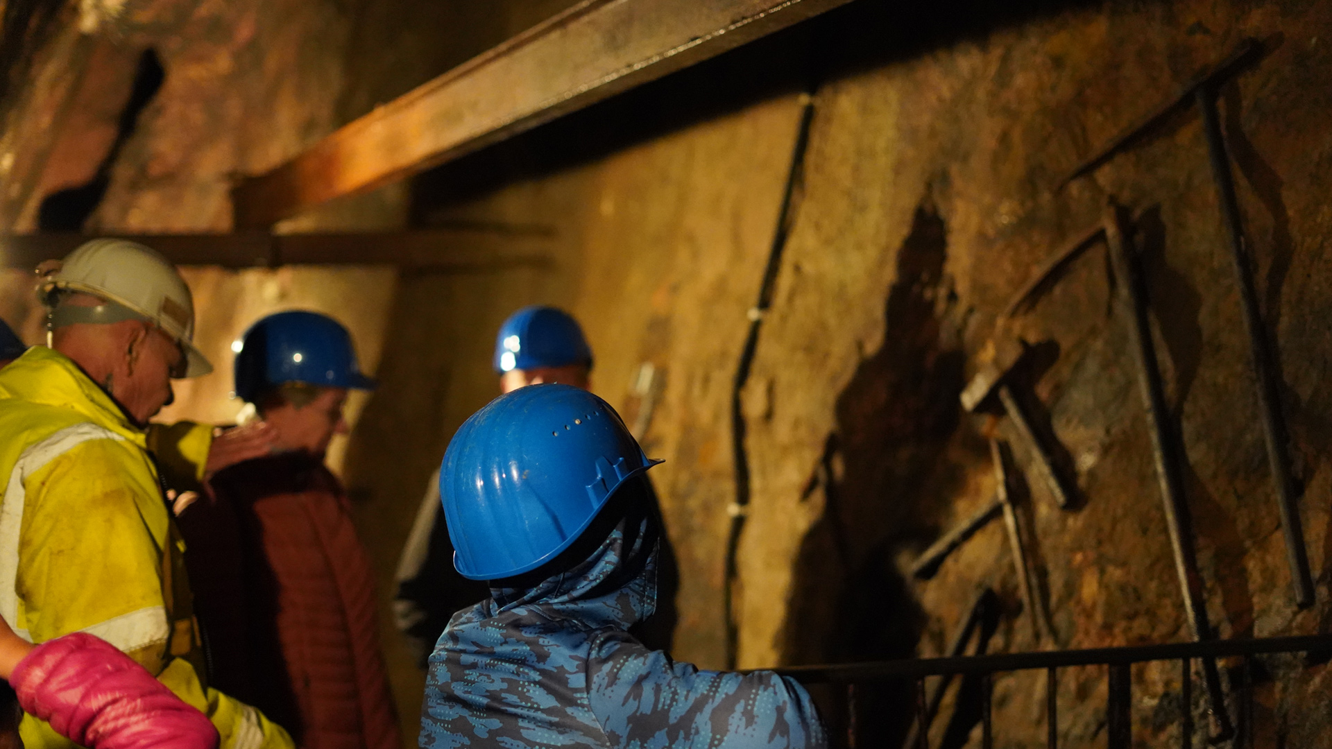 Wir werden einen großen Abbau (Weitung) befahren von 60 Metern Ausdehnung und 30 Metern Höhe. Gehen über eine Wendeltreppe bis zu einer freitragenden Plattform, von der sich Euch ein faszinierender Anblick bietet.